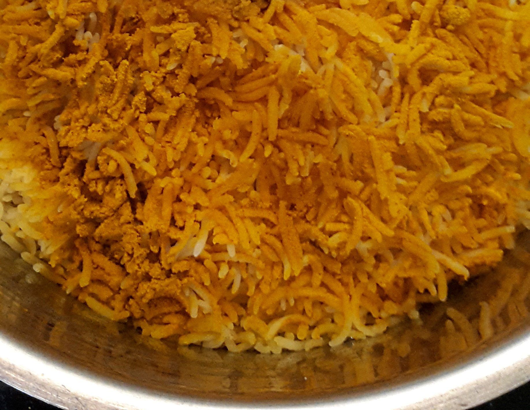 - Du erhältst einen wunderbaren, durchgegarten, aber kein bisschen matschigen Reis, der durch das unterschiedlich verteilte Kurkuma deine Mahlzeit hübsch bunt macht.