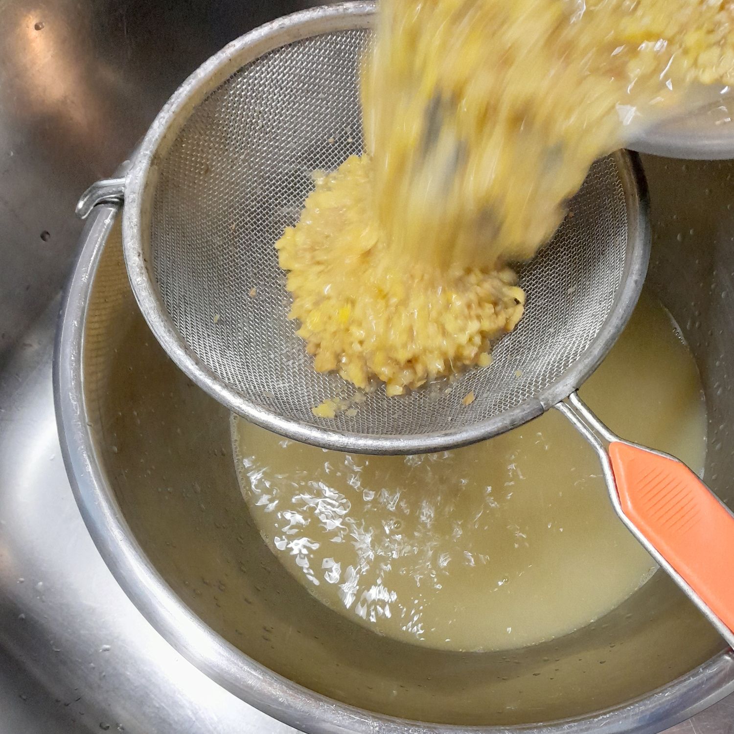 - abseihen, (Achtung! Die Flüssigkeit in einer Schüssel auffangen, denn die brauchen wir ja ;-D)