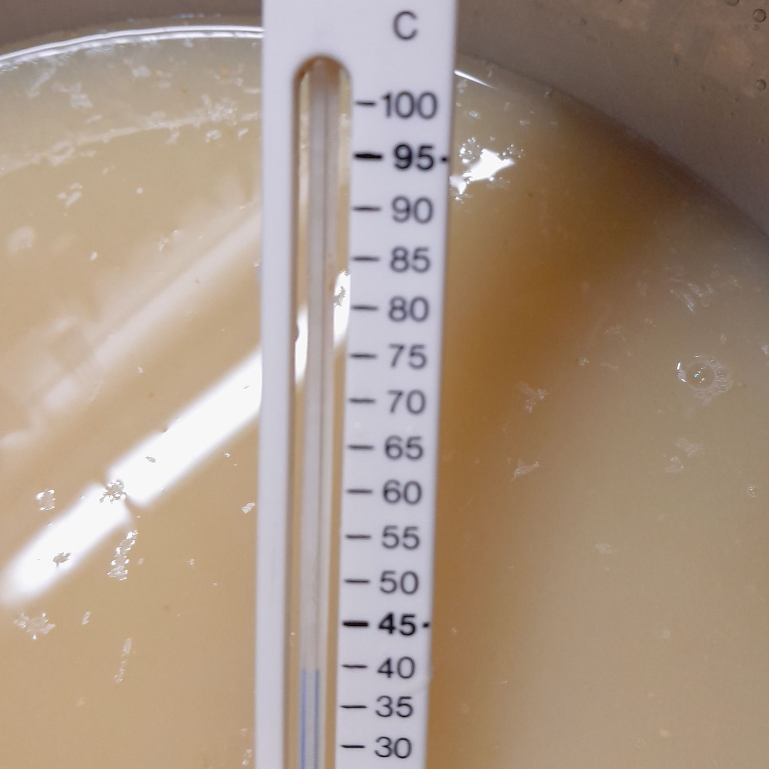 - erst wenn die Flüssigkeit weniger als 40Grad hat, den Honig dazu und durch sanftes Rühren auflösen