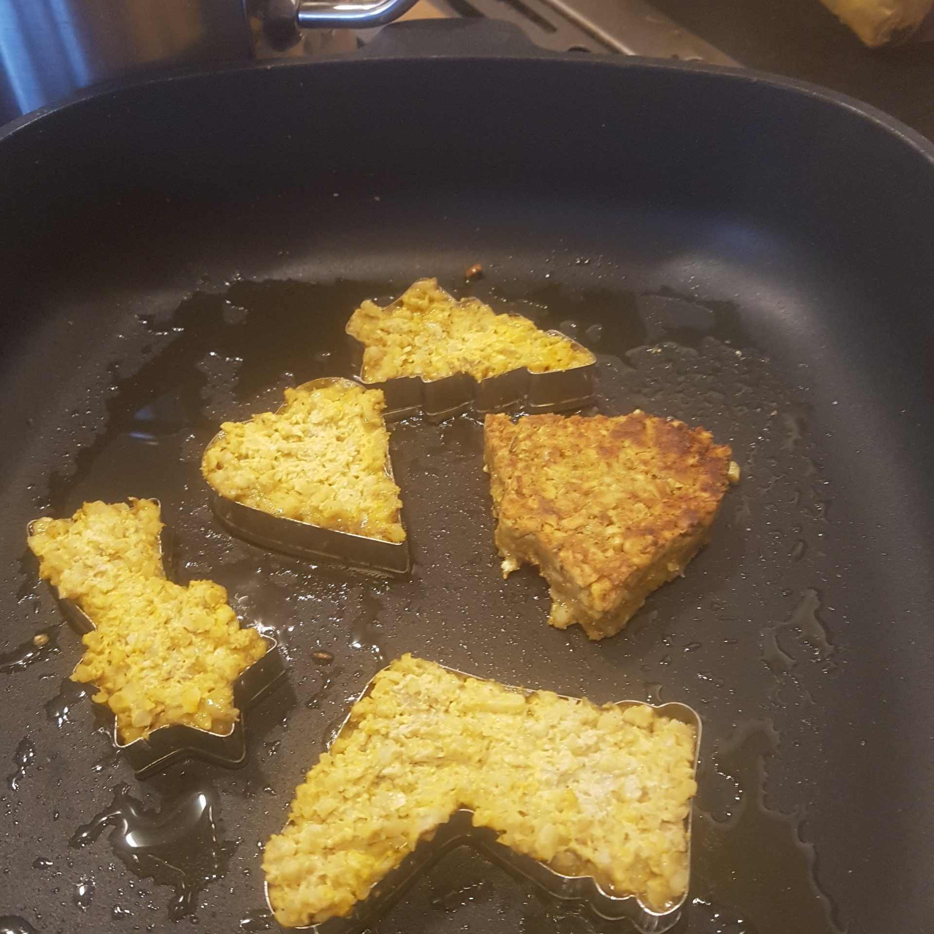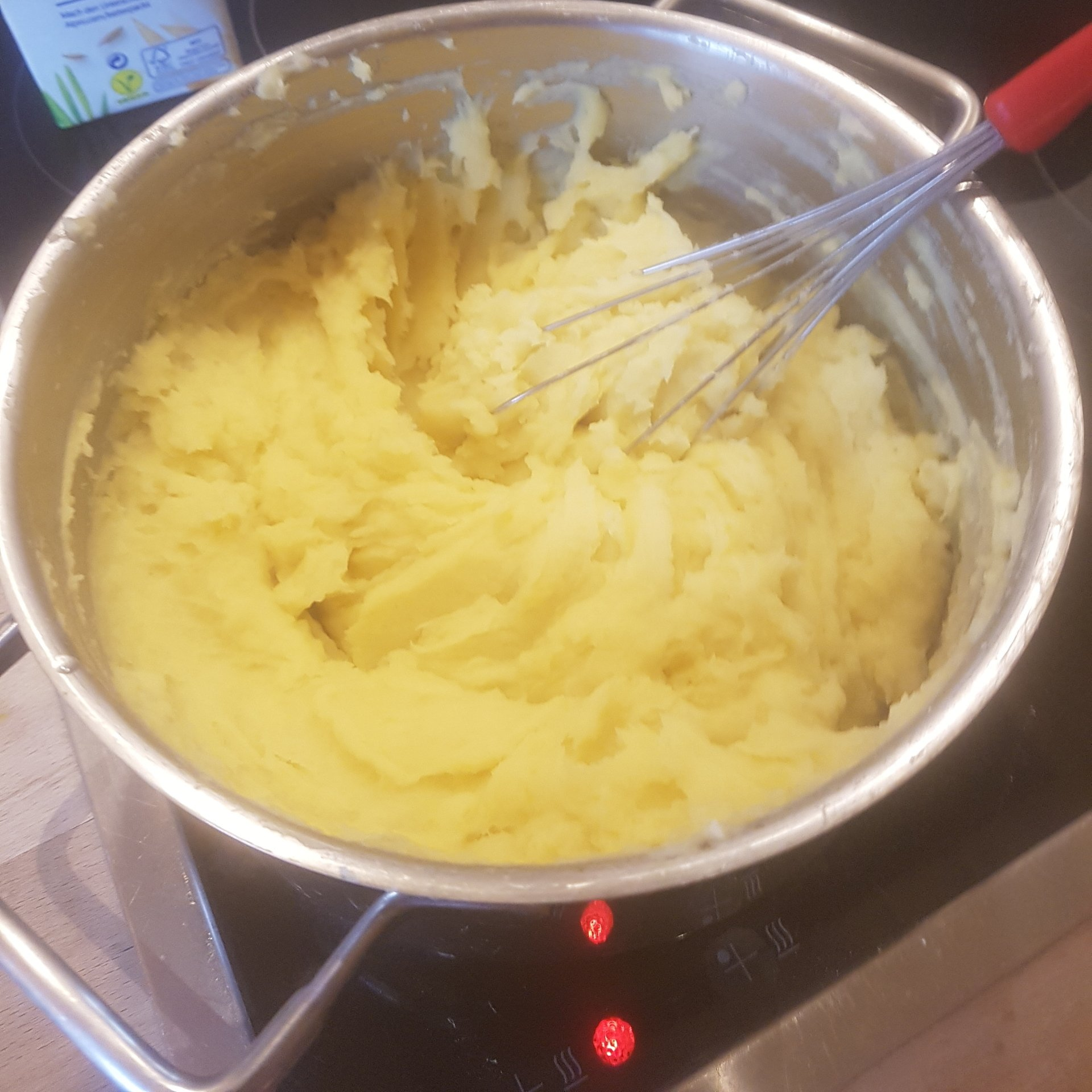 - Jetzt musst du dich zeitlich gut organisieren und gleichzeitig den Kartoffelbrei zubereiten und die Plätzchen in der Pfanne rausbacken.
