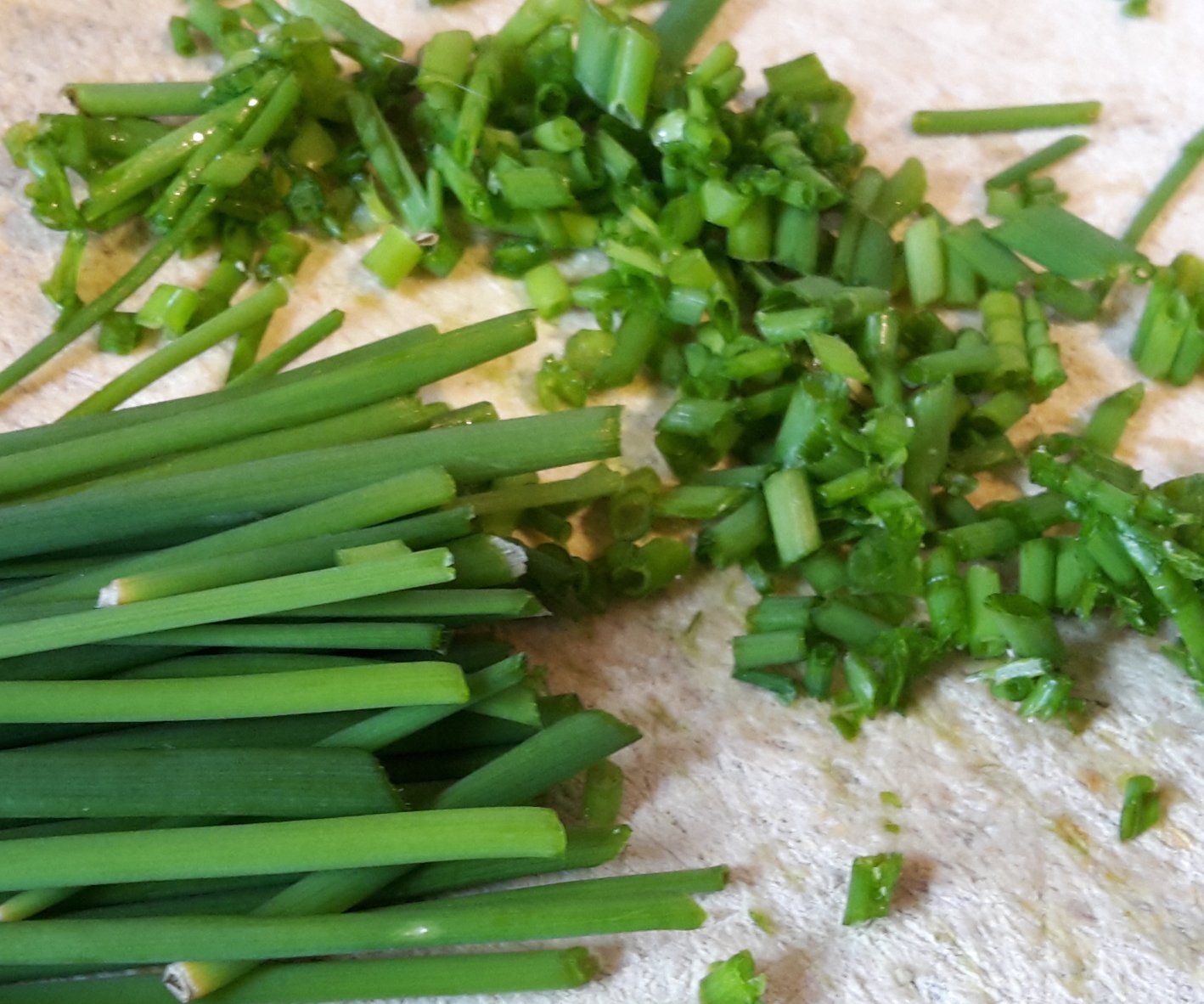 - Den Schnittlauch inzwischen waschen und schnippeln.