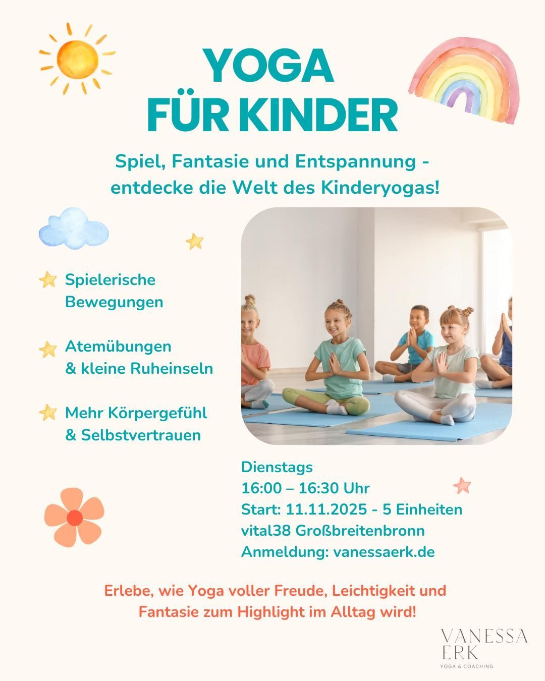 Wir freuen uns so sehr, dass wir euch endlich wieder Yoga für Kinder von 4 - 6 Jahren anbieten können! Im November gehts los mit Vanessa Erk.